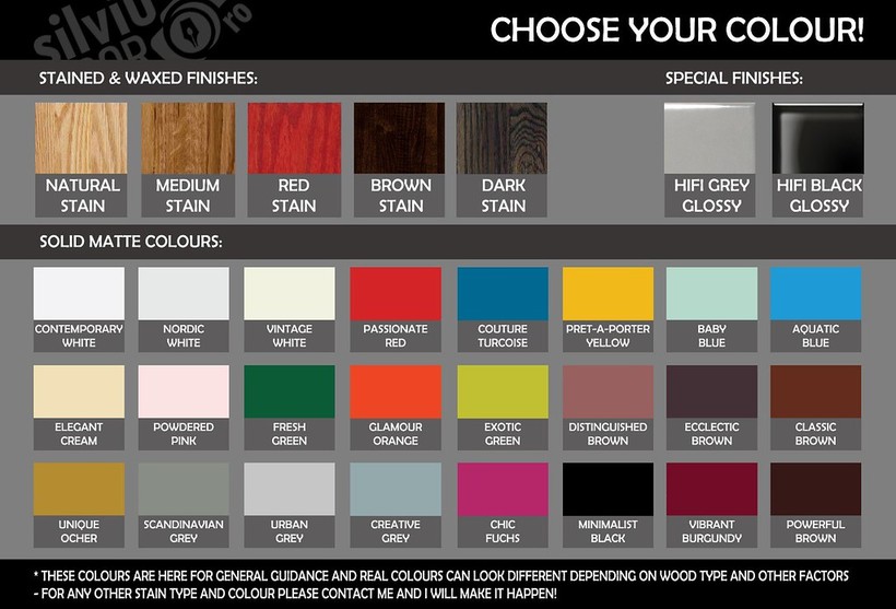 La comanda se pot customiza in orice culoare din paletarul de mai jos (cca. 1-2 saptamani termen de realizare)