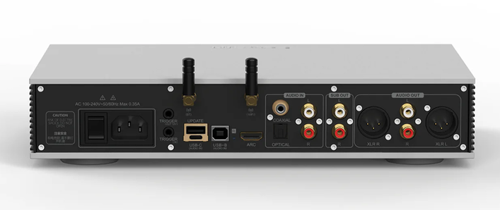 Output: XLR3 Balanced Socket (balanced), RCA*2 (unbalanced), subwoofer (RCA*2), Balanced Headphone (4.4mm Socket ×1 + XLR4 Balanced Socket ×1), Single Ended Headphone (6.35mm Socket)