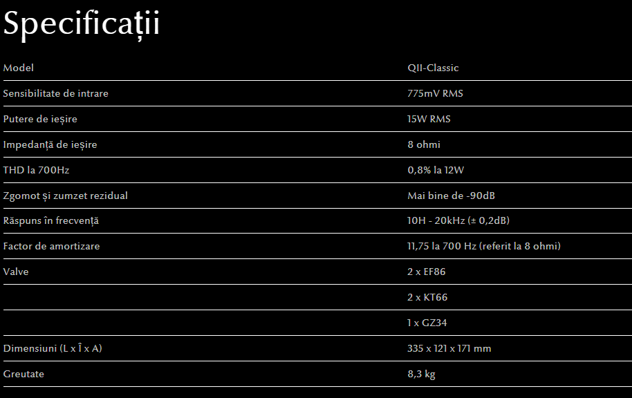 Specificatii tehnice pentru Amplificator Quad QII-Classic