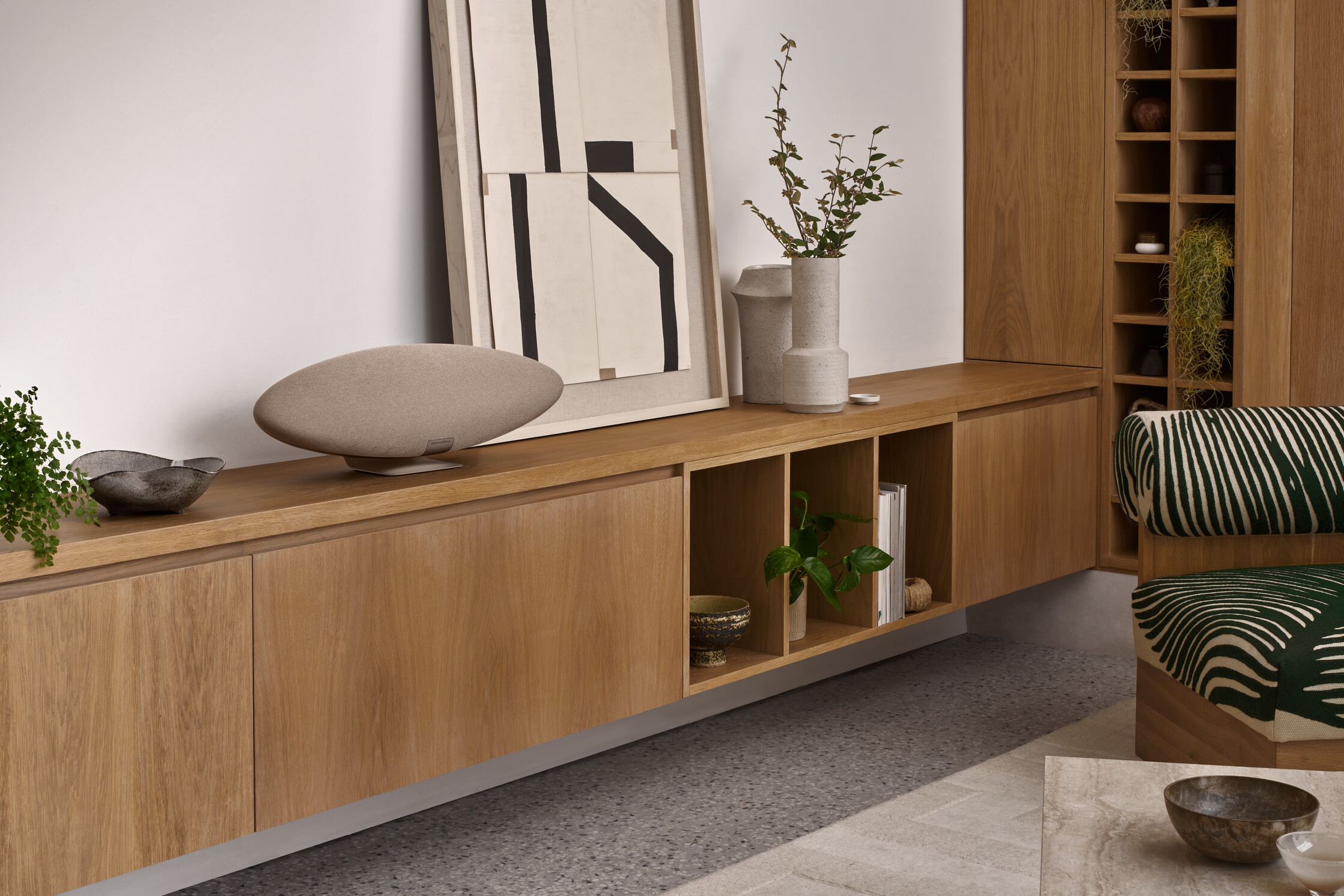 Sistemul include un subwoofer de 150 mm, montat central în structura Zeppelin Pro Edition. Designul său a fost optimizat cu grijă pentru a evita vibrațiile nedorite ale carcasei în timpul funcționării, oferind astfel un bas mai curat și mai agil, care completează perfect sunetul de înaltă rezoluție al întregului sistem.