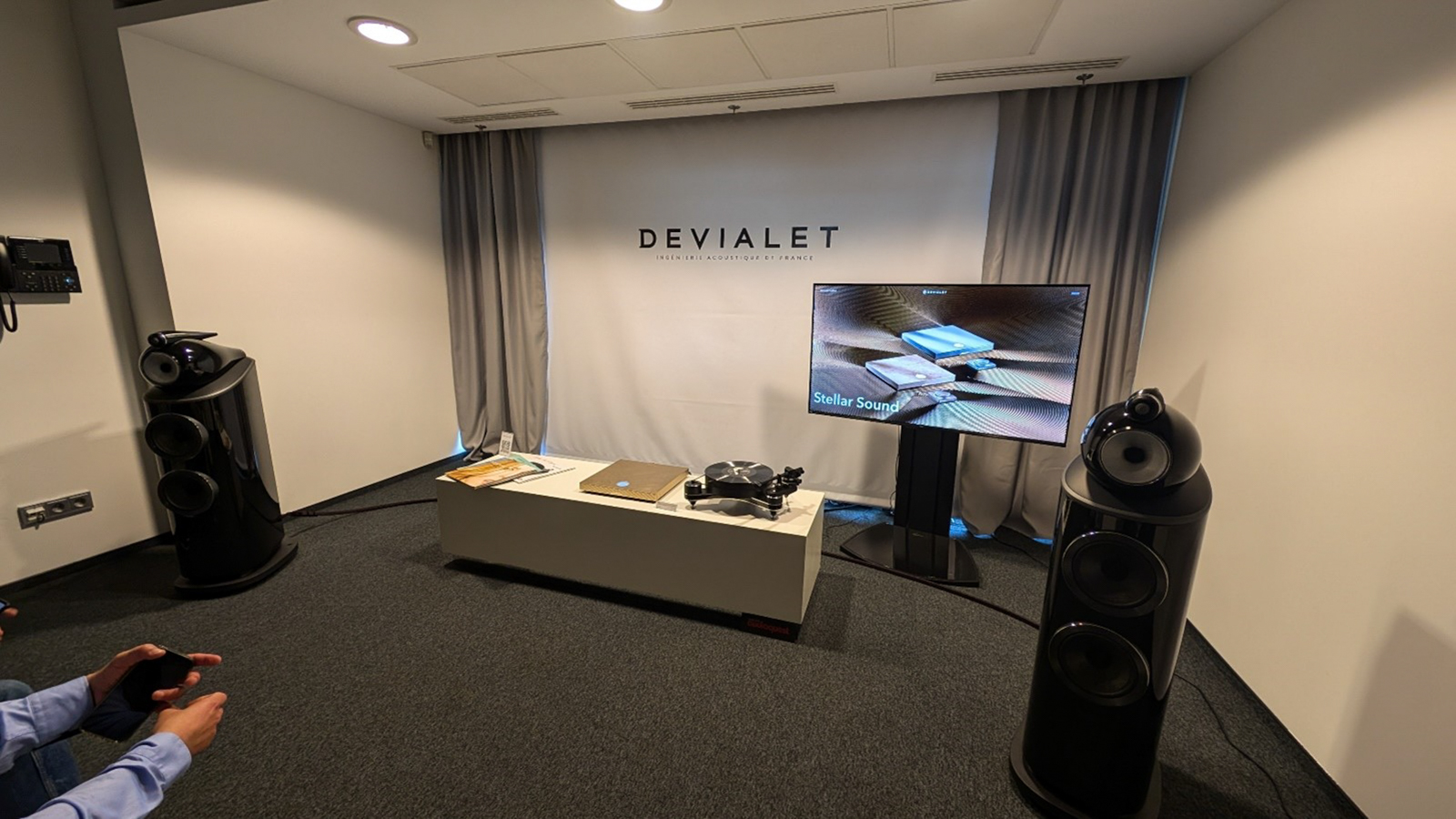 Devialet au avut o prezență puternică la show, cu o lansare de produs nou, o nouă generație a amplificatorului Astra. Mai jos o imagine din camera Devialet de la Stadion, alegerea lor de incinte a fost Bowers & Wilkins: