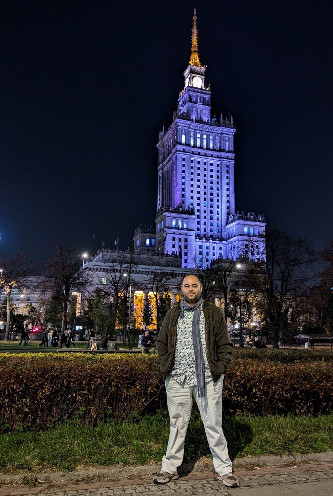 Această zi se încheia cum altfel decât cu o masă copioasă. Bineînțeles, dragă cititorule, că visam în continuare la pirogi, însă nu le obținusem nici de data aceasta. În această a două seară fusesem invitați de organizatorii Audio Video Show 2024 la o cină care avea loc într-un restaurant libanez. Evident libanezii nu au pirogi. Am mâncat însă unul din cele mai bune humusuri și unul din cele mai bune sosuri de usturoi așezat atent lângă un kebab de miel delicios. Am băut și am mâncat și ne-am simțit bine cu colegii jurnaliști, contemplam zilele ce trecuseră și îmi spusesem că mai era doar o zi și că trebuia să fac cumva să mănânc pirogi. Ne-am încheiat seara cu o plimbare prin centrul de business al Varșoviei, acolo unde stă semeț simbolul lor comunist „Palatul de Cultură și de Știință” realizat de comuniștii ruși, chiar de același arhitect care a realizat și Casa Presei Libere din București. Este interesant, însă, că polonezii l-au transformat într-un simbol pozitiv al orașului, acesta depășind de mult statutul său de simbol comunist.