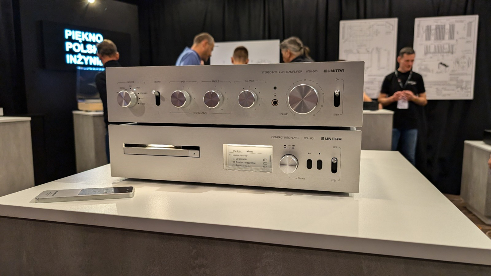 O zonă interesantă de la Radisson a fost cea a celebrului brand polonez Unitra în care polonezii investesc mult și se dorește un comeback serios. Camera a fost plină de sisteme formate din echipamente Unitra, în fotografia de mai jos poți observa unul din highlight-urile expoziției, un nou CD-Player cu un sertar iluminat foarte interesant și un display de tip e-ink.