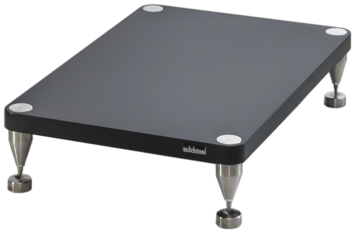 Se numește platformă amplificator Solidsteel HY, vine în două iterații în funcție de mărime HY-A și HY-B, este realizată din MDF finisat glossy piano-black superb, și, cel mai important de fapt, are în dotare niște spike-uri și contra-spike-uri din oțel foarte grele care fac o treabă excelentă pentru decuplare. Dintre toate platformele și soluțiile pe care le-am testat, Solidsteel HY a fost cea mai grozavă, o soluție neașteptat de bună, cu un raport calitate-preț la fel de grozav. Sunt sigur că mai există și alte platforme ca aceasta care pot rezolva problema, însă, concluzia și sfatul acestei rubrici: nu ignora pe ce stă amplificatorul tău integrat sau power-amp-ul tău, este o chestiune extraordinar de importantă, este uimitor cât de mult schimbă sunetul unui aparat!