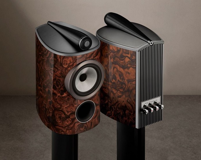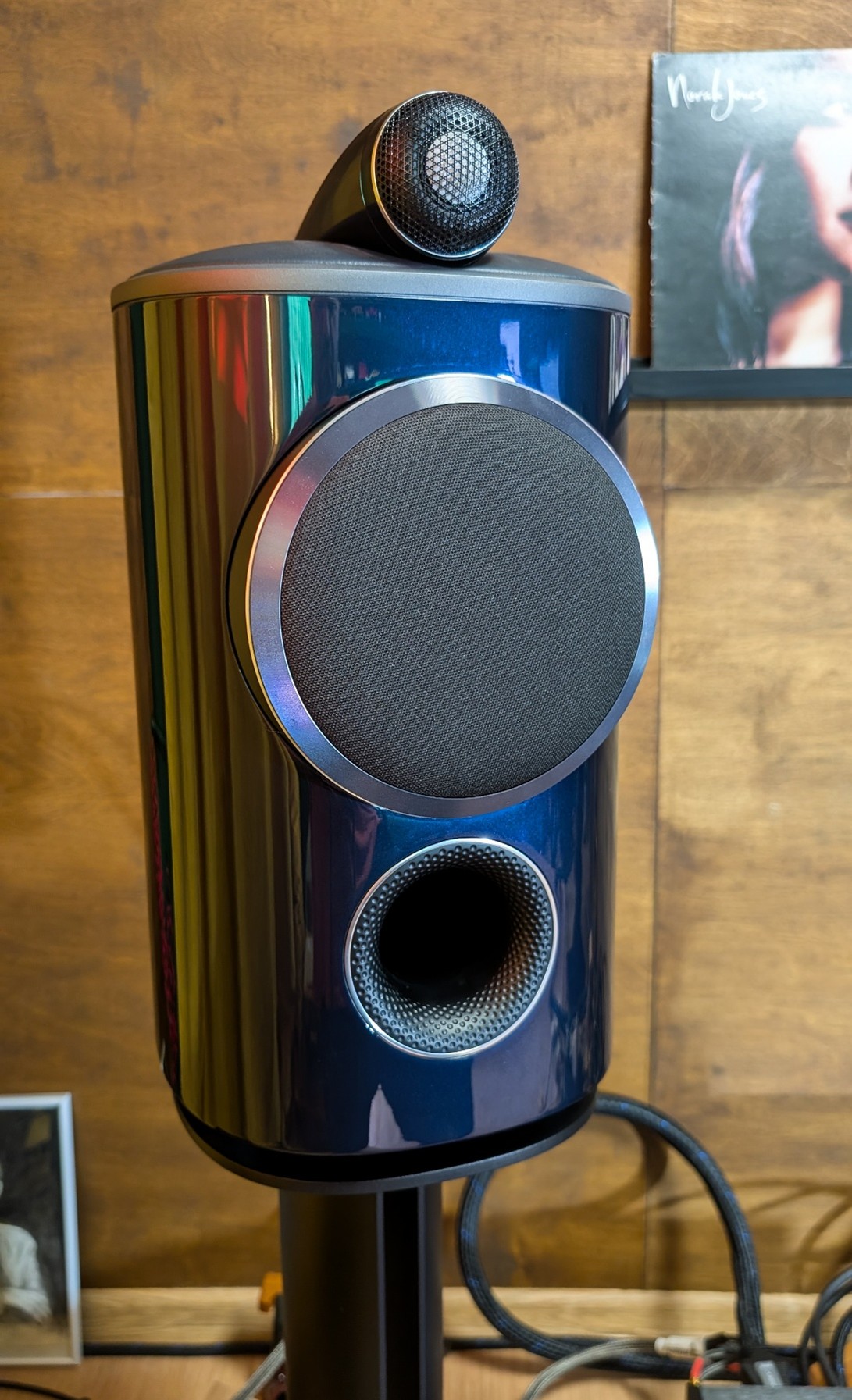 În primul rând trebuie menționat că în cazul 805 D4, seria Signature se diferențiază prin finisaje, fiind disponibilă doar în două variante: Midnight Blue Metallic și California Burl Gloss. În imaginea de mai sus se poate observa varianta California, pe când, în toate fotografiile mele vei observa varianta Midnight Blue, cea pe care am avut-o eu la dispoziție pentru review. De remarcat că acestea sunt singurele variante de culoare disponibile, cele clasice ale seriei 800 nefiind disponibile pentru seria Signature. De remarcat, de asemenea, și faptul că în partea de sus boxa este finisată cu piele reală furnizată de renumita companie Connolly Leather UK.