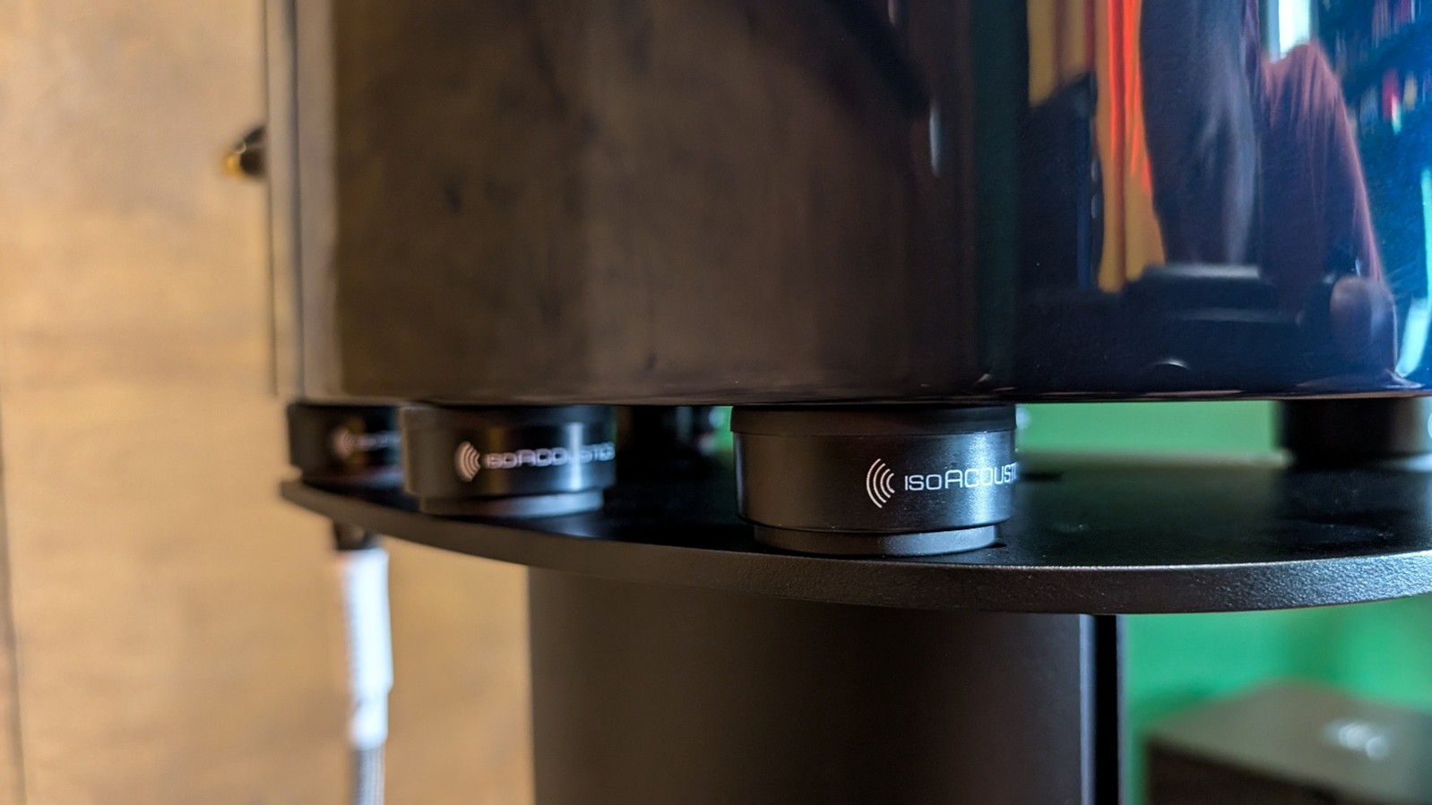 Așa cum îți spuneam și în review-ul precedent, voi păstra în fiecare articol această rubrică „Un pont audiofil”, menită a-ți relata câte un trick de optimizare. În perioada cât am testat 805 D4 Signature, am încercat mai multe boxe de raft împreună cu mai multe standuri și, în goana mea după „sunetul perfect”, am descoperit un mic trick cu un efect foarte mare asupra sunetului. Trick-ul mi-a fost inspirat de bunul meu prieten Vlad Birișteică, în al cărui sistem observasem că poziționase între boxă și stand niște pucuri de izolare de la Isoacoustics, pe numele lor „ISO-PUCK mini”. Uzual, preferam să pun între boxă și stand fie 3-4 puncte de Blu-Tac, fie să le prind cu șuruburi, atunci când aveam această posibilitate. Ideea lui Birișteică însă a fost foarte interesantă, pentru că, dacă stăm să ne gândim, având deja niște picioare de izolare către podea, apoi adăugând această soluție de izolare între boxă și stand, obținem ceea ce se numește dubla-decuplare, o chestiune care mi-a adus întotdeauna numai rezultate bune. Zis și făcut – înarmat cu această idee am decis să încerc și la mine, așa că am dat la o parte Blu-Tac-ul și am încercat cu pucurile de izolare. Sunetul a fost simțitor mai bun, mai elastic, mai adânc, scena mai mare, mai curată, totul mult mai bine. Îi mulțumesc lui Birișteică pe această cale pentru acest pont, pe care l-am testat și face bine pe mai multe tipuri de boxe de raft. Nu este un trick scump, dar aduce niște diferențe mari. În plus, nota bene: nu trebuie să folosești un anume model de pucuri de izolare, orice tip de decuplare poate fi folosit.