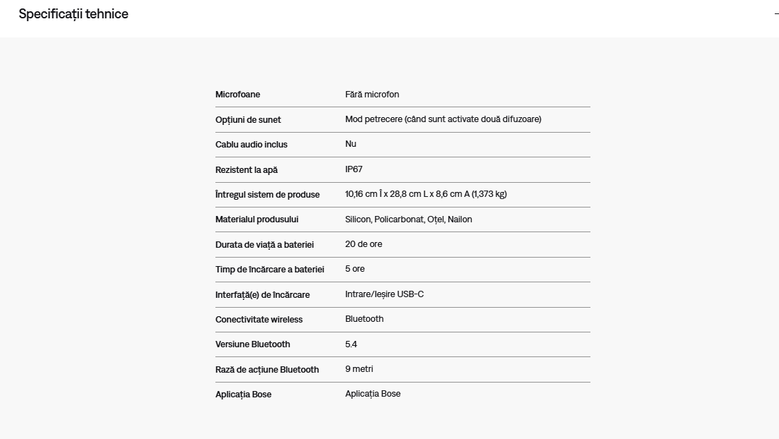 Specificatii tehnice pentru Boxe active Bose SoundLink Plus Portable Speaker