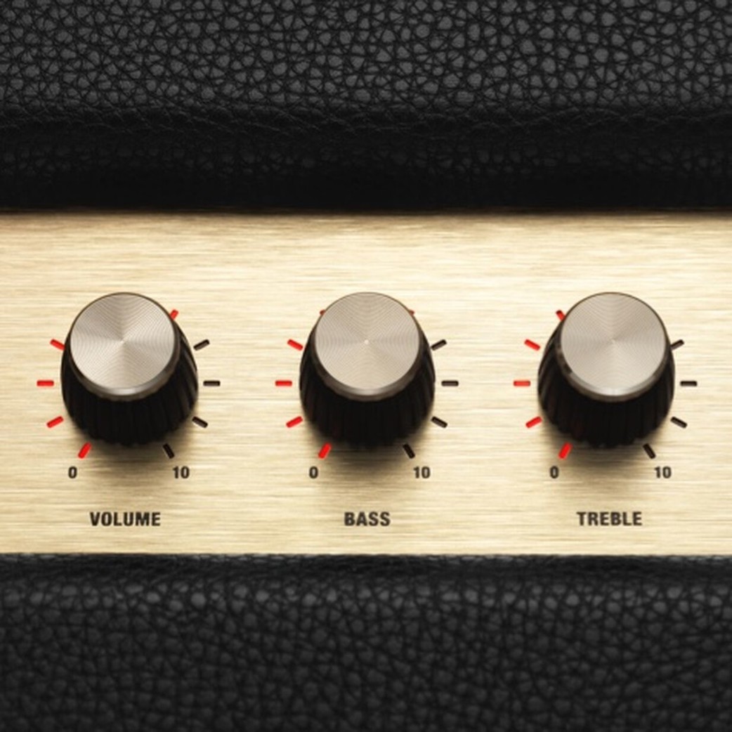 Modifica-ti muzica pana e pe gustul tau cu aplicatia Marshall Bluetooth sau cu controalele analogice de pe panoul de sus al boxei.