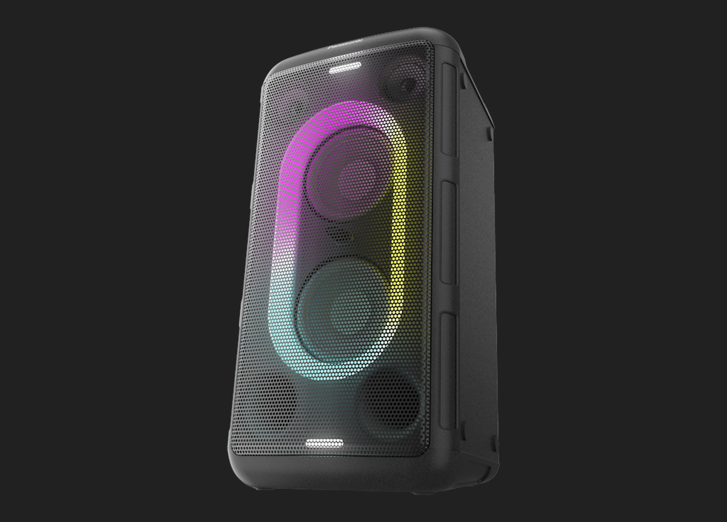 SpecificatiiPutere de petrecere 150 W (150 W AC/50 W baterie) Pana la 15 ore de functionare cu baterie Woofer-uri puternice de 14 cm – cu 2 tweetere si porturi de bas dedicate Bine conectat – Bluetooth, intrare AUX, USB-A, intrare optica Mic in & Chitar in 7 culori stralucitoare cu 12 modele de iluminare diferite