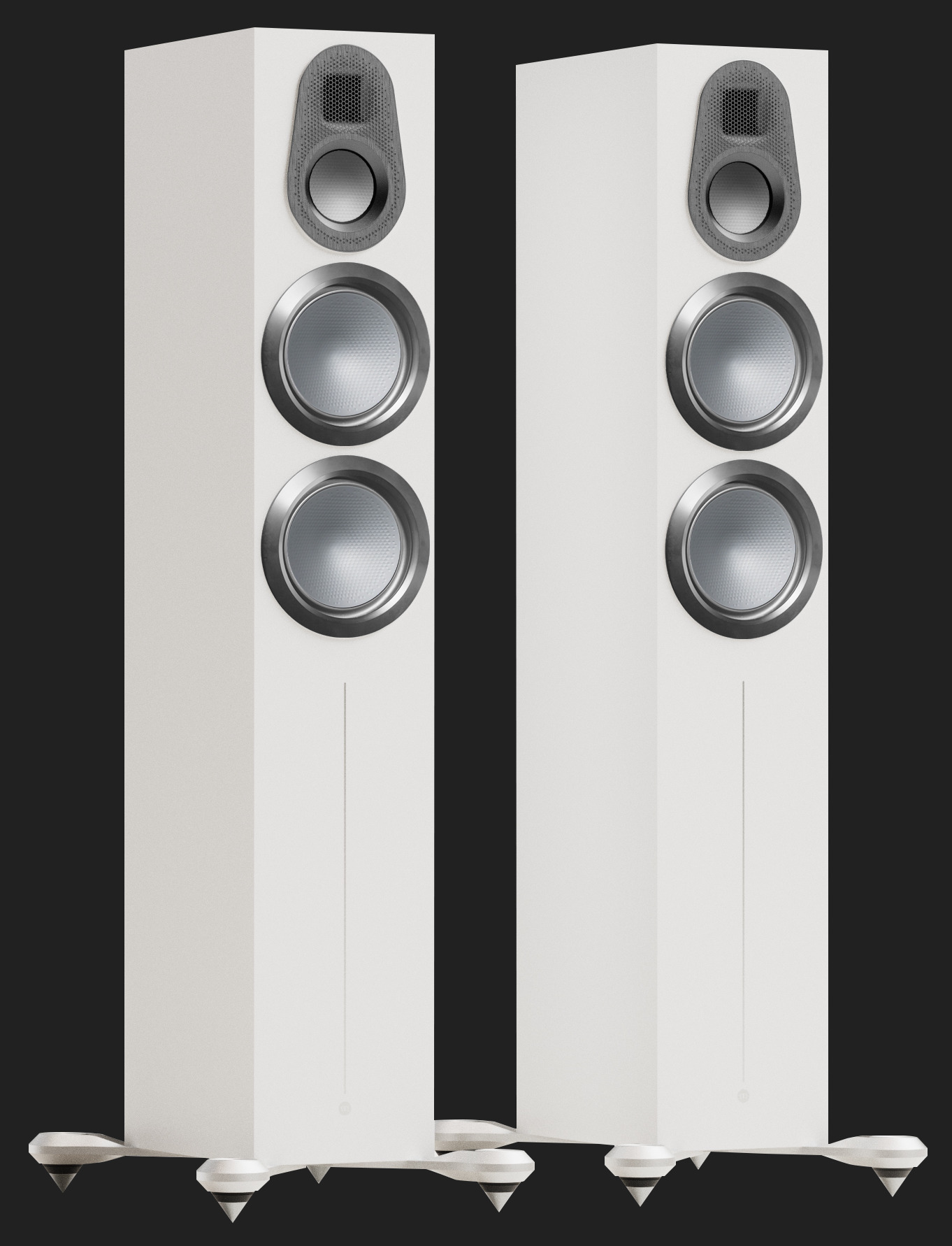 Driver nou de medii de 3 inchiSeria Gold 6G include un nou difuzor de medii de 3 inchi. Filosofia ingineriei driverelor de medii cu dimensiuni reduse se bazează pe faptul că acestea oferă nivele mult mai largi de precizie pentru separarea instrumentelor și prezentare și prin urmare nu trebuie să coboare sub 500Hz. Având un diametru mai mic înseamnă că "deformarea conului" are loc mult peste frecvența superioară de crossover, eliminând orice distorsiune pe care aceasta ar crea-o și asigurând o tranziție lină către transductorul de înaltă frecvență MPD III. În plus, acest nou driver este găzduit într-o incintă dedicată din oțel, oferind volumul exact necesar pentru performanțe optime fără a compromite volumul carcasei, necesar pentru răspunsul de bas. Această abordare asigură că nu există interferențe între cele două, pentru o prezentare mai curată, mai precisă și mai detaliată. |