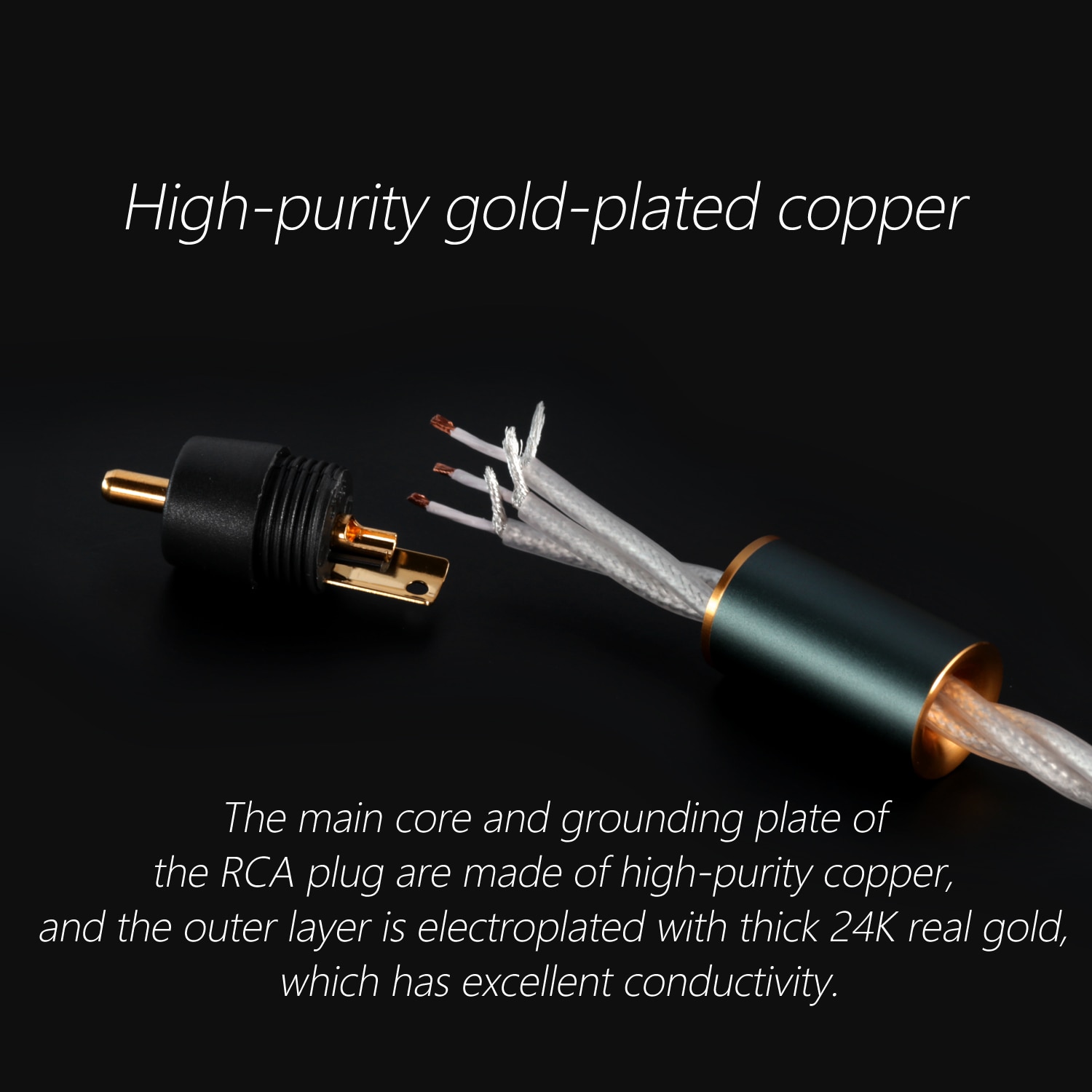 Conectorii RCA sunt din cupru PCOCC placati cu aur.