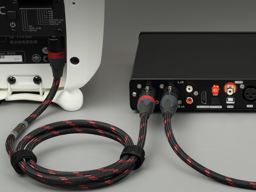 Cabluri interconectare XLR (varianta 75 cm lungime) foarte bine lucrate, destul de groase și semirigide, protecție conectori, foarte buna calitate