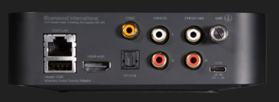 - Conectati orice sursa audio cu cablu la HUB pentru a o introduce in ecosistemul Bluesound