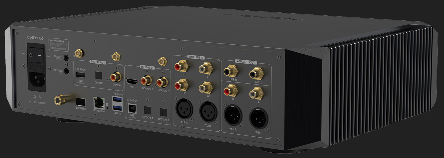 Eversolo DMP-A10: surse de alimentare liniare duale Eversolo si-a echipat DMP-A10 cu o sursa de alimentare duala. Aceasta configuratie consta dintr-un transformator toroidal si o sursa de alimentare liniara cu zgomot redus. Acest lucru separa circuitele audio de circuitele sistemului DMP-A10 pentru a evita interferentele