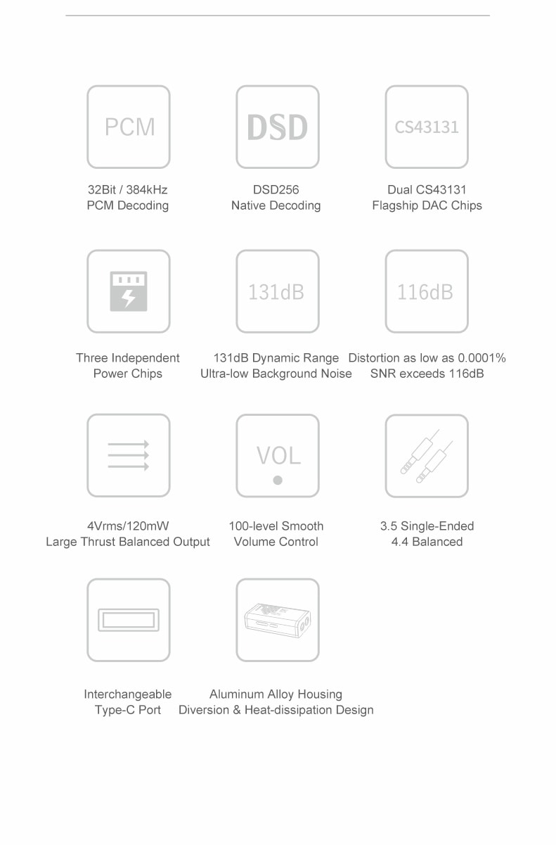 Constructia robusta din aliaj metalic, dimensiunile ultra-compacte si interfata USB-C plug-and-play fac din acest model o alegere ideala pentru ascultare la calitate de studio oriunde te-ai afla. Iesirea balansata de 4.4 mm completeaza pachetul, aducand o dinamica extinsa si separatie stereo excelenta.