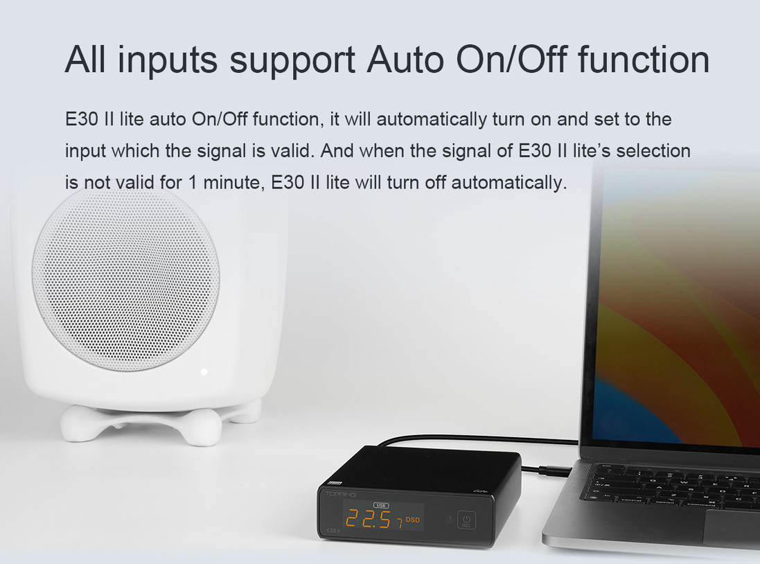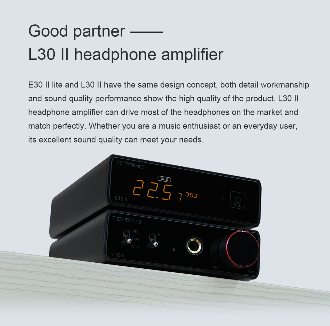 Beneficiind de puternicul procesor XMOS de a doua generație, E30 II Lite poate reda streaming audio de până la DSD512 și PCM768kHz si este compatibil cu o mare varietate de sisteme de operare, inclusiv Windows 10, Windows 11, MAC, Linux și iOS/Android. Acest DAC oferă o sursă de muzică HiFi optimă pentru computerul dvs., fără grijile legate de fluctuatiile de semnal care afectează calitatea sunetului.