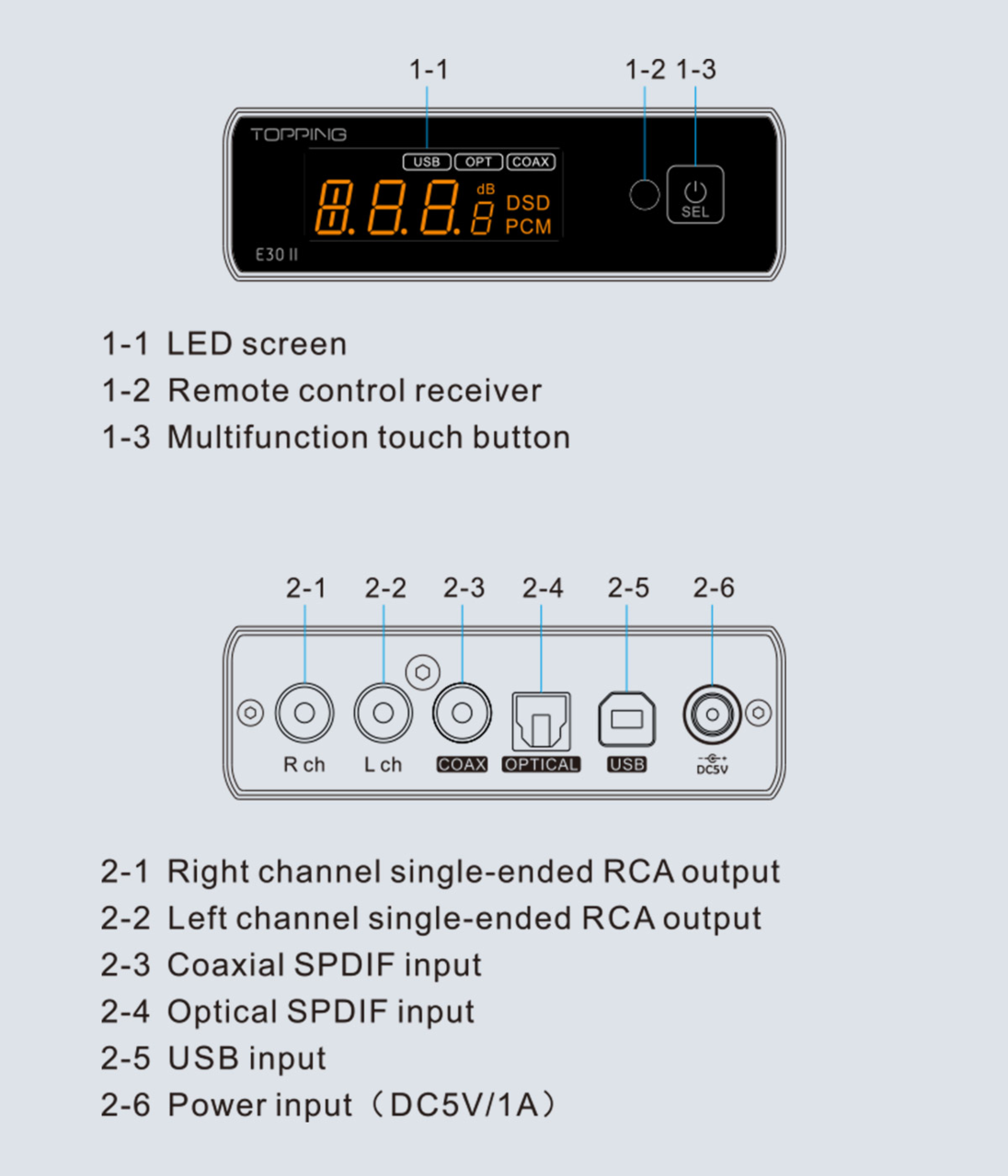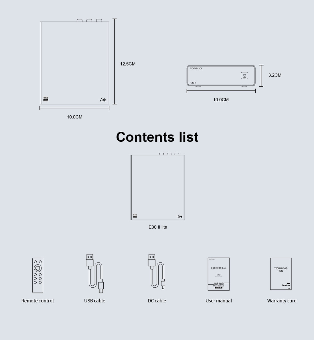 Specificatii tehnice pentru DAC Topping E30 II Lite