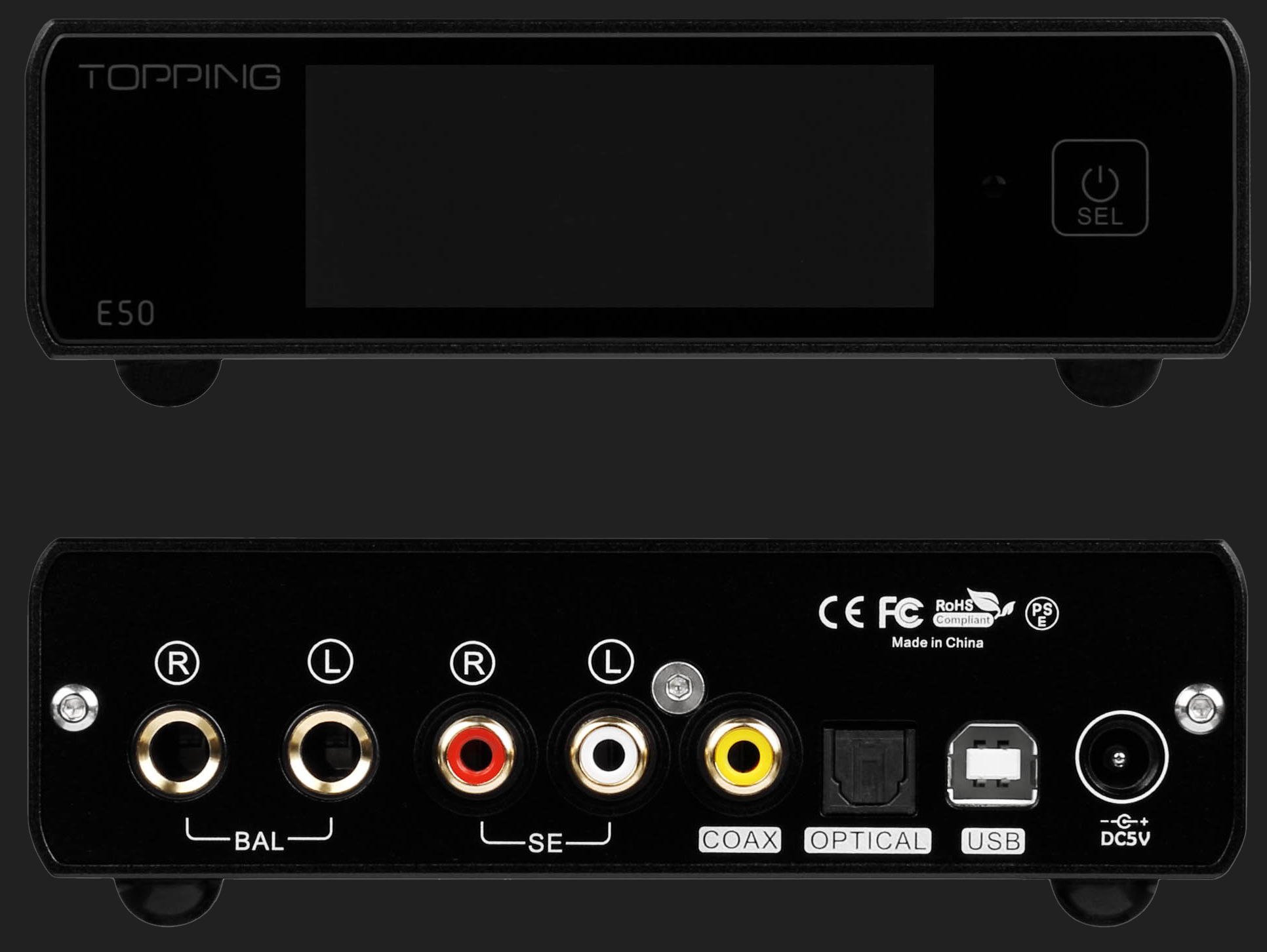 Îl folosesc cu un CD player care are doar rolul de transport, conectat la acesta prin cablu coaxial, iar la preamplificator prin conexiune balansată, cu cabluri de la TRS de 6,3 mm la XLR. Și doar ca DAC, nu ca preamp (adică cu volumul fixat la 0 dBFS). Ceea ce-mi place cel mai mult este că standby-ul automat funcționează perfect. Se trezește imediat ce pornesc CD playerul și intră în stand-by la un minut după oprirea lui. Practic nu mai am grija lui. Sunetul este impecabil, după cum indică și măsurătorile de pe internet. Clar, corect, cinstit, cu nimic adăugat sau scos. Exact așa cum a fost înregistrat. Cine caută "căldură", "feeling analogic" sau alte de-astea (care de fapt înseamnă distorsiuni sau răspuns neliniar în frecvență), nu le va găsi aici. Dar cine vrea claritate și precizie maximă, cine vrea să audă exact ceea ce a intenționat inginerul de sunet, nu are motiv să caute mai departe, pentru că E50 exact asta face. Cu condiția, bineînțeles, să folosiți filtrul nr. 1, cel liniar rapid, care de atfel este și cel implicit. Ca aspect, cel puțin după gustul meu, arată foarte bine. Carcasa metalică este foarte plăcută la atingere, iar afișajul este elegant și plăcut. Mi-a fost puțin teamă că va arăta ca o chinezărie ieftină, dar nu, nici vorbă de așa ceva, nici pe departe. Singurul minus este că nu vine cu sursă de alimentare, ci doar cu un cablu terminat într-o mufă USB-A. Din fericire însă, mufa rotundă, de 5V cu plusul pe interior, este identică cu cea de la iFi, deci am putut să folosesc sursa de calitate foarte bună a DAC-ului iFi pe care-l aveam înainte.