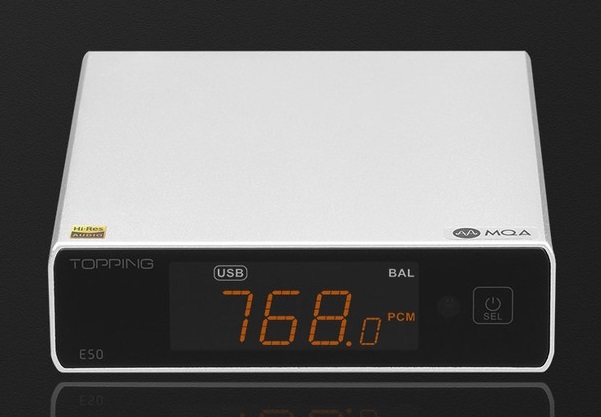 Sunet autoritar, clar, curat, natural, cu toate detaliile perfect conturate; nu este favorizată nici o frecvenţă în detrimentul alteia; dinamica este excelentă, iar imaginea stereo (soundstage) impresionantă, uneori, mai ales în căşti bune, pare că se aude surround. Apropie pînă la identificare sunetul unui Flac cu 96 KHz/ 24 bit, de cel redat analog. Comparaţii: Cambridge audio DAC Magic 100 – depăşit la toate capitolele, mai ales la dinamică şi la semnătura muzicală (Cambridge scoate un sunet cam anodin). Topping E30 – oferă cunoscutul „sunet catifelat”, extrem de frumos, însă deloc onest. Favorizînd frecvenţele medii, instrumentul central şi în special vocea „vin” spre tine, astfel încît restul orchestraţiei, din stînga şi dreapta, se cam estompează. iFi Audio ZEN DAC 3 – sunet oarecum plat, fără nerv. E50 este şi peste alte DAC-uri mai scumpe. Dacă vă place un sunet mai dulce, puteţi descărca gratis: E50 version V1.09 firmware update