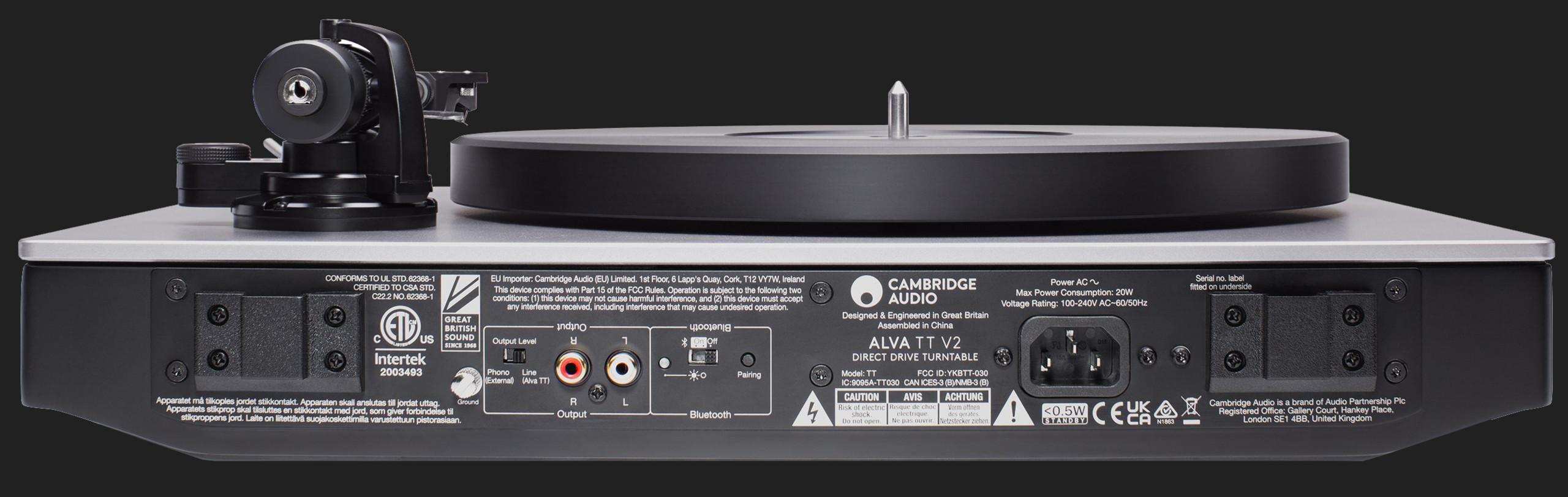Etaj phono incorporatAlva TT V2 dispune de un etaj phono incorporat, derivat din premiatul Alva Duo, pentru a dezvalui detalii incredibile de pe inregistrarile preferate. Inseamna ca puteti conecta TT V2 la orice amplificator sau sistem de boxe compatibil. Puteti dezactiva etajul phono, in cazul in care amplificatorul dispune deja de unul. | |