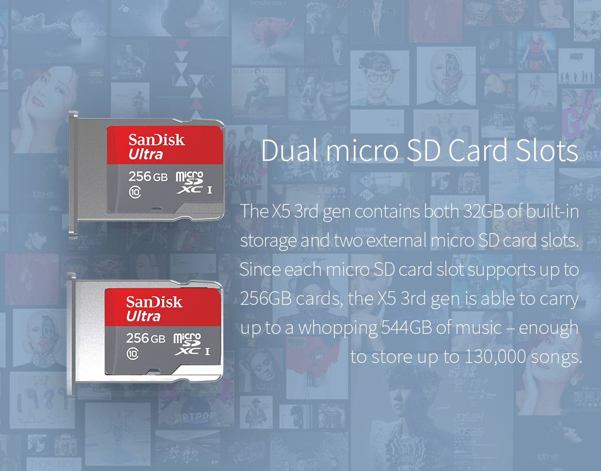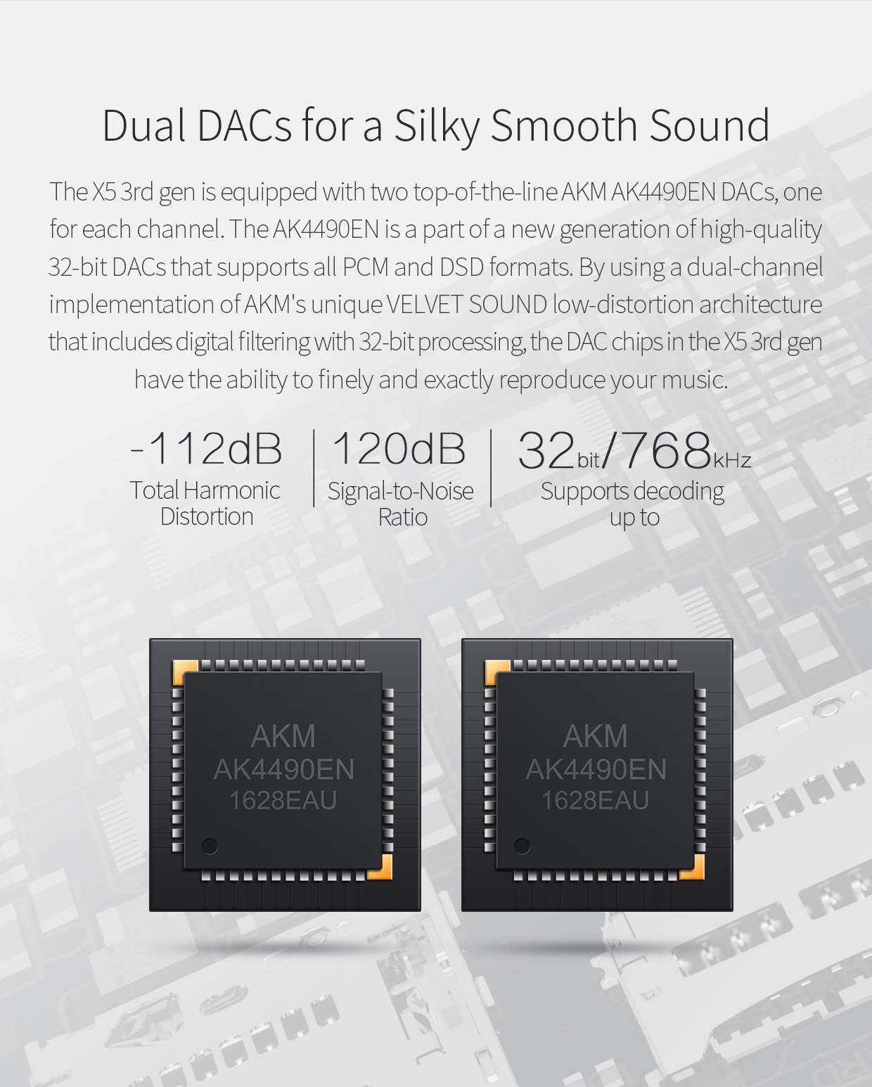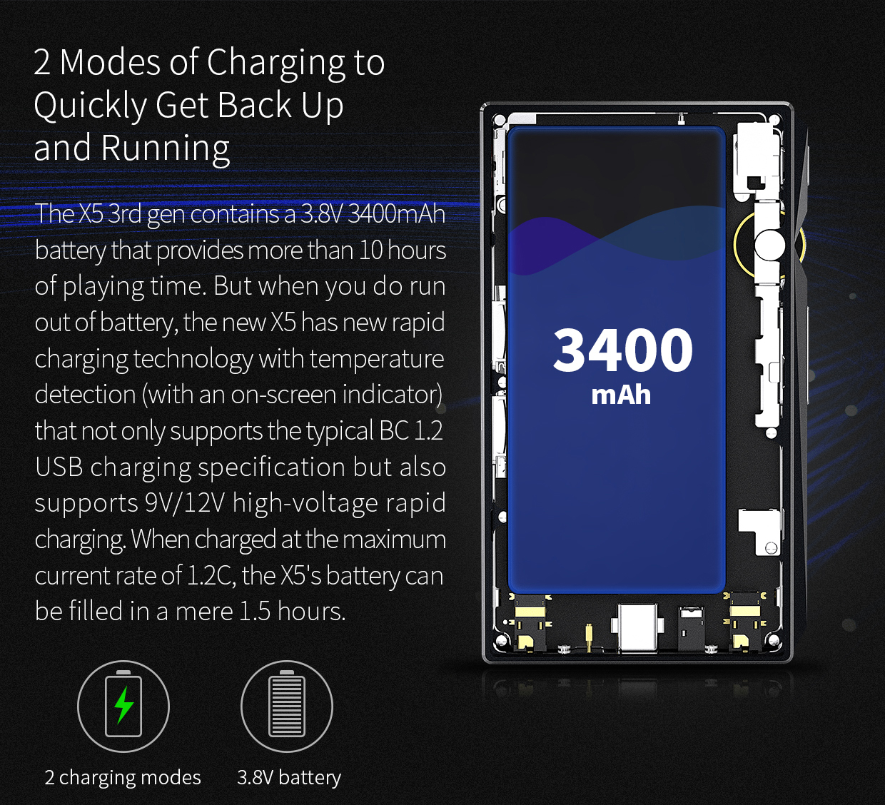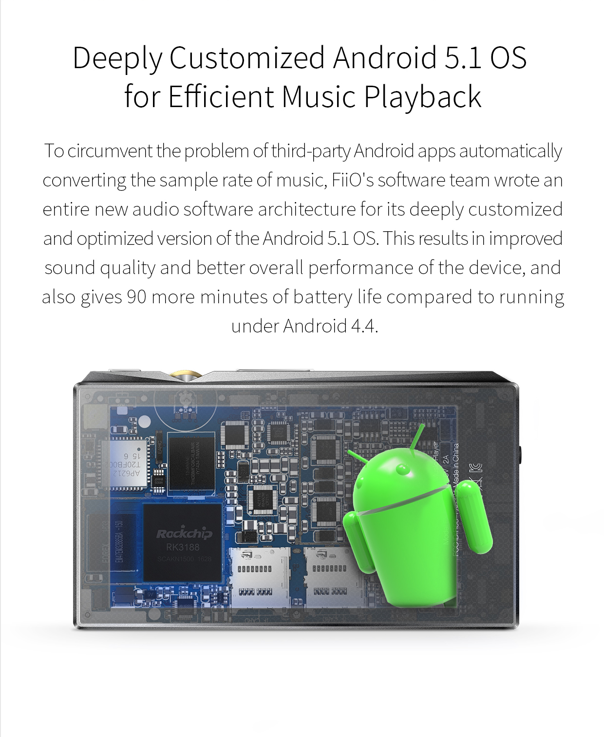 Lista componentelor utilizate in noul X5 III este impresionanta, aparatul fiind construit in jurul a doua DAC-chip-uri varf de gama, modelul fiind AKM 4490. Sistemul de operare este Android, procesorul utilizat fiind un Quad-core RK3188, 1 giga de ram, 32gb memorie interna, expandabila cu inca 512 giga cu ajutorul celor doua sloturi de card.