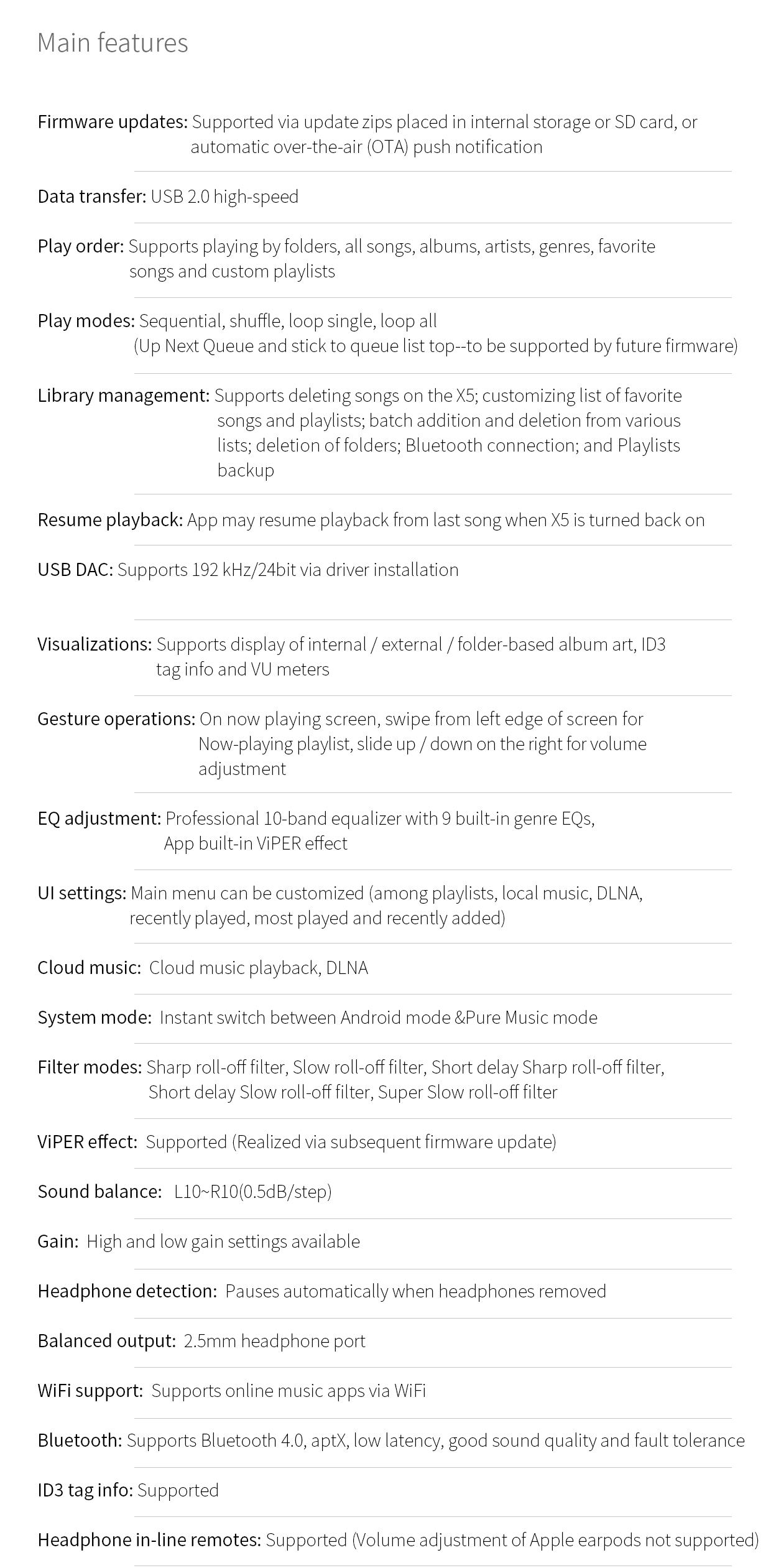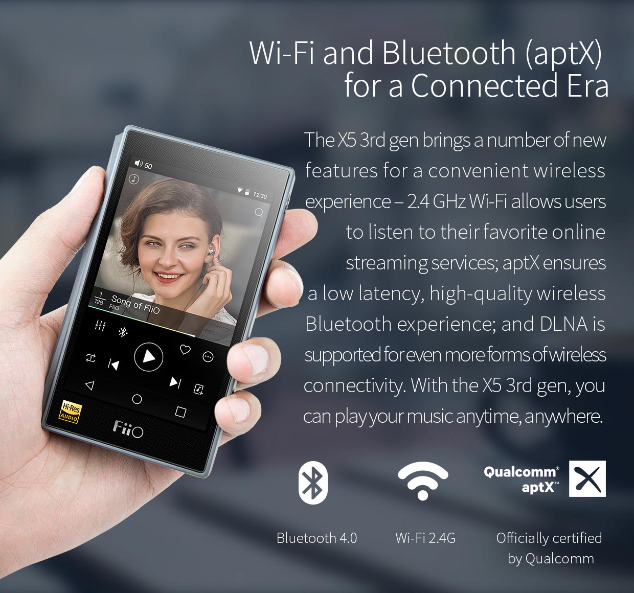 Noul X5 III este dotat cu WiFi si suporta nativ pentru aplicatii de streaming online precum Tidal, sau Spotify, suport nativ pentru streaming DLNA si Bluetooth 4.0 cu aptX.