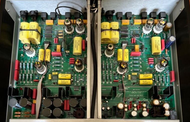V3 & V4 ( E83CCS sau 12AX7 low-noise, împerecheate, non-microfonice ), V5 ( 6922 6DJ8 no noise, neîmperecheate )