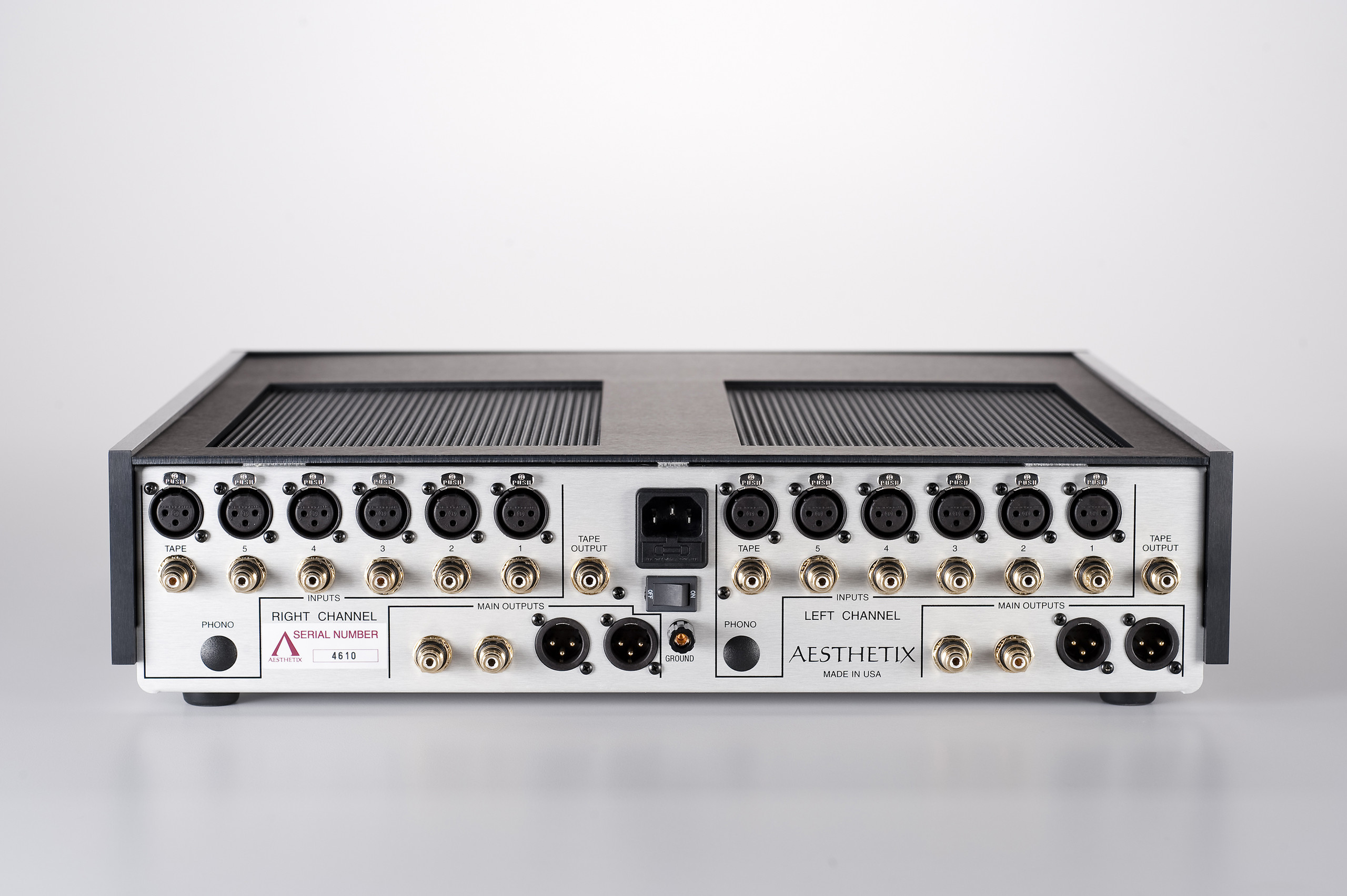 Toate intrările sunt echipate și cu RCA și cu XLR - semnalul nebalansat este transformat de la intrare de circuitele balansat-diferențiale.