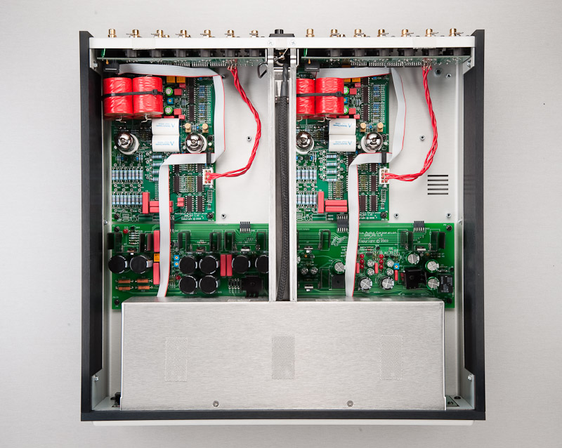 Condensatorii din polipropilenă Rel-Cap sunt înlocuiți cu o variantă custom-made cu Teflon ( 2 per canal între gain stage și output stage )