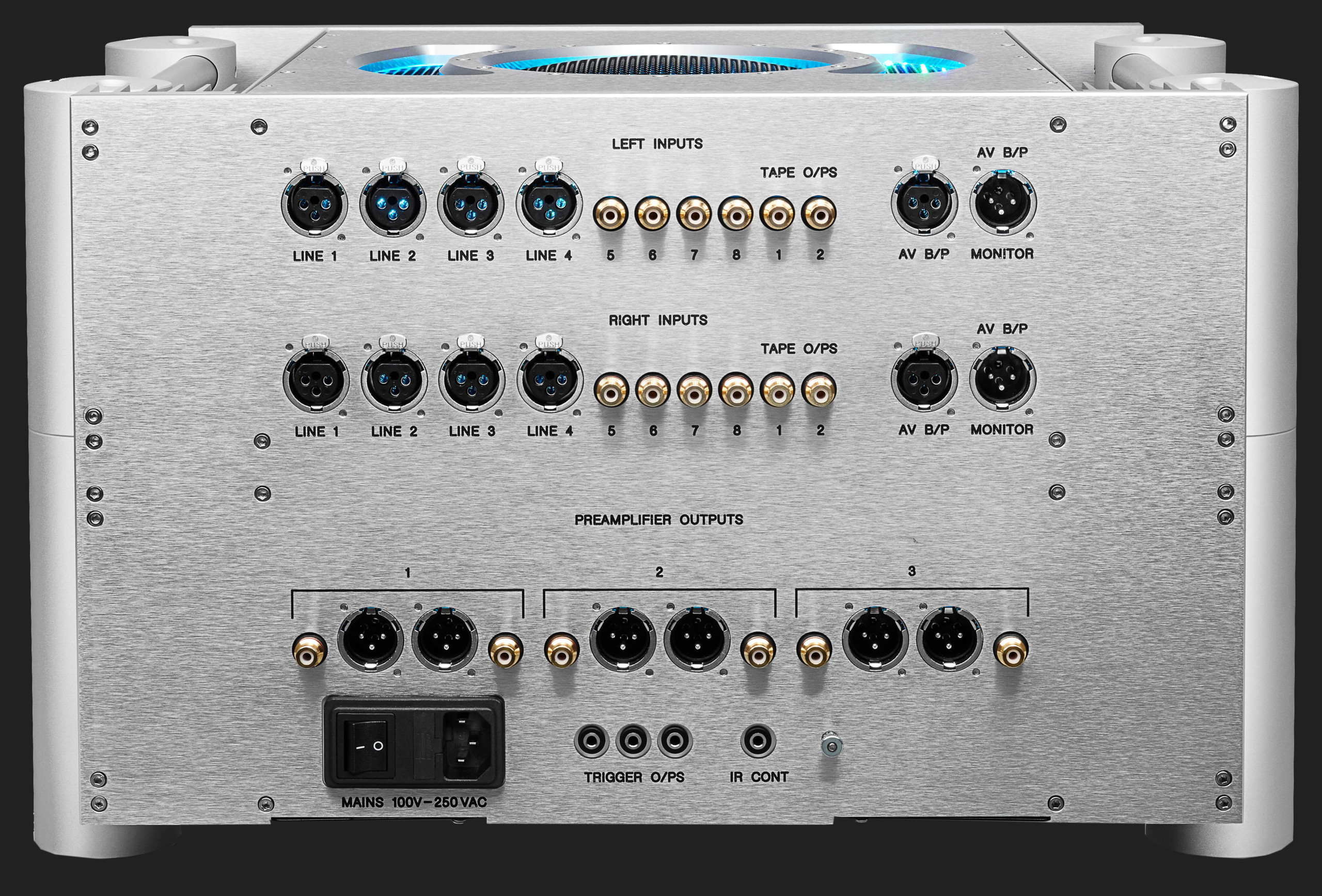 4x Stereo XLR Inputs | 3x Stereo RCA Outputs | 3x Stereo XLR Outputs | Convection Cooled |