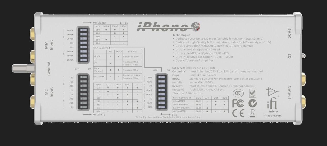 iFi iPhono ofera posibilitatea de a alege intre 6 curbe distincte de egalizare, lucru nemaiintalnit pe preamplificatoare de doza din aceasta zona de pret si nu numai. iPhono este unul dintre cele mai corecte preamplificatoare de doza existen, din punct de vedere tonal, existente pe piata.