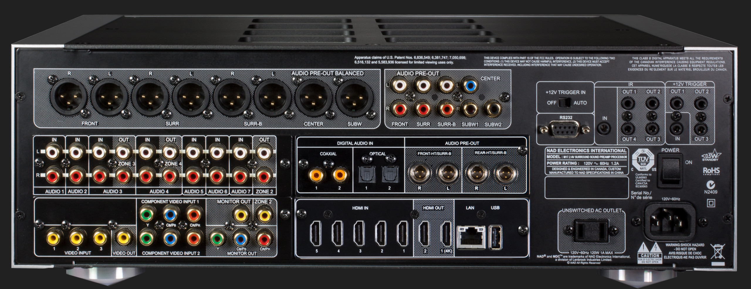 Ca toate preamplificatoarele profesionale, M17 oferă ieșiri audio balansate pentru toate cele șapte canale. Conectorii XLR și electronica specială a interfeței permit cabluri lungi fără preluarea zgomotului sau pierderea semnalului. Zgomotul de fon practic inexistent și dinamica explozivă oferită de un amplificator balansat adaugă drama și entuziasm fie ca ascultati muzică sau vizionati filme.