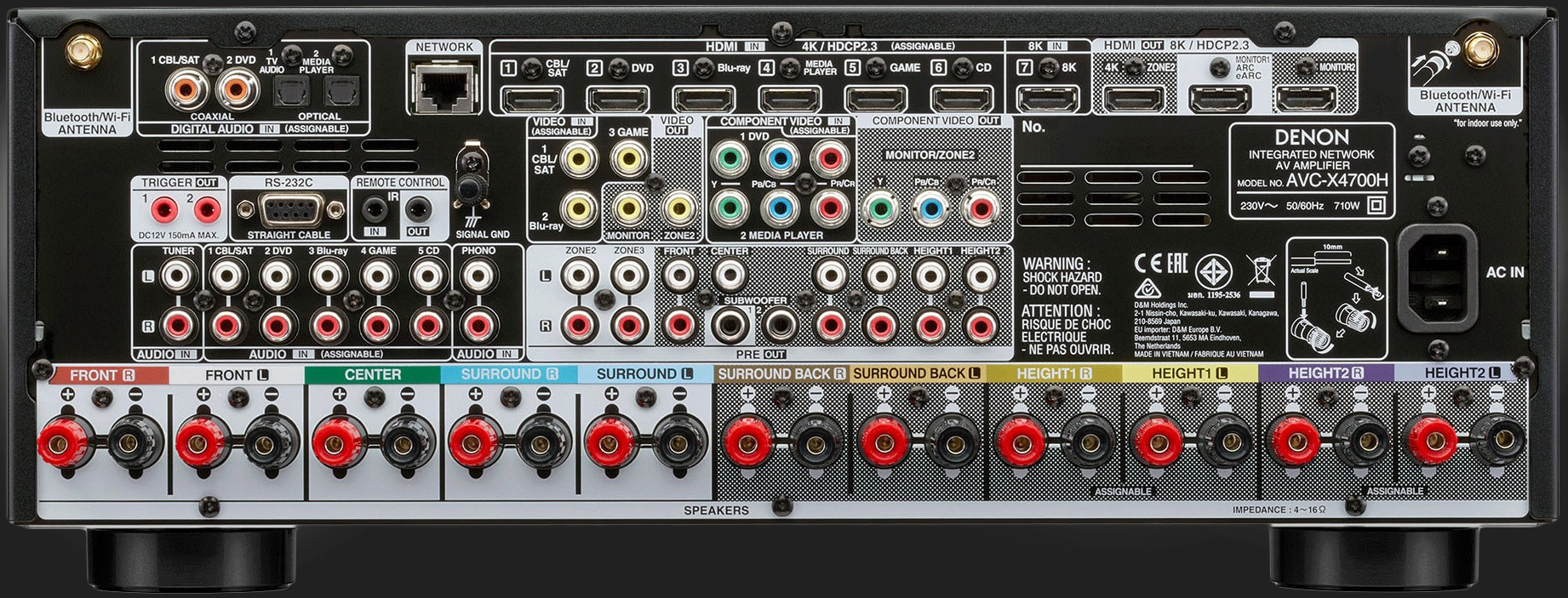 Sectiune avansata 8K HDMI cu eARCAVC-X4700H dispune de un etaj avansat HDMI (8in/3out) cu o intrare dedicata 8K ce suporta video pass-through 8K/60Hz si 4K/120Hz. Toate intrarile HDMI dispun de sub sampling 4:4:4 Pure Color, HDR10, Dolby Vision, Hybrid Log-Gamma (HLG), si suport BT.2020 pass-through pentru claritate, contrast si culori uimitoare. Bucurati-va de upscaling 8K precum si de procesarea HDCP 2.3 pentru a reda continut protejat. AVC-X4700H utilizeaza de asemenea eARC (enhanced Audio Return Channel) pentru a suporta formatele audio 3D direct din aplicatiile TV-ului catre receiver-ul AV. | |