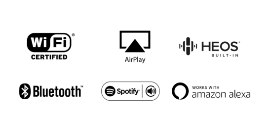 HEOS incorporat pentru streaming muzical wirelessBucurati-va de muzica preferata in orice camera, wireless, cu tehnologia incorporata HEOS. Redati aceeasi melodie in fiecare camera sau selectati o piesa diferita pentru fiecare camera conectata - alegerea este a dvs. Functioneaza de asemenea cu Amazon Alexa, Google Assistant, Apple Siri si osh.ai pentru o oferi un control vocal de ultima generatie si de un sunet incredibil pentru divertismentul la domiciliu. Conectati boxele Denon Home pentru o experienta audio completa. HEOS suporta Spotify, Pandora, Amazon Music HD, TuneIn, SoundCloud, SiriusXM, TIDAL si multe altele. |