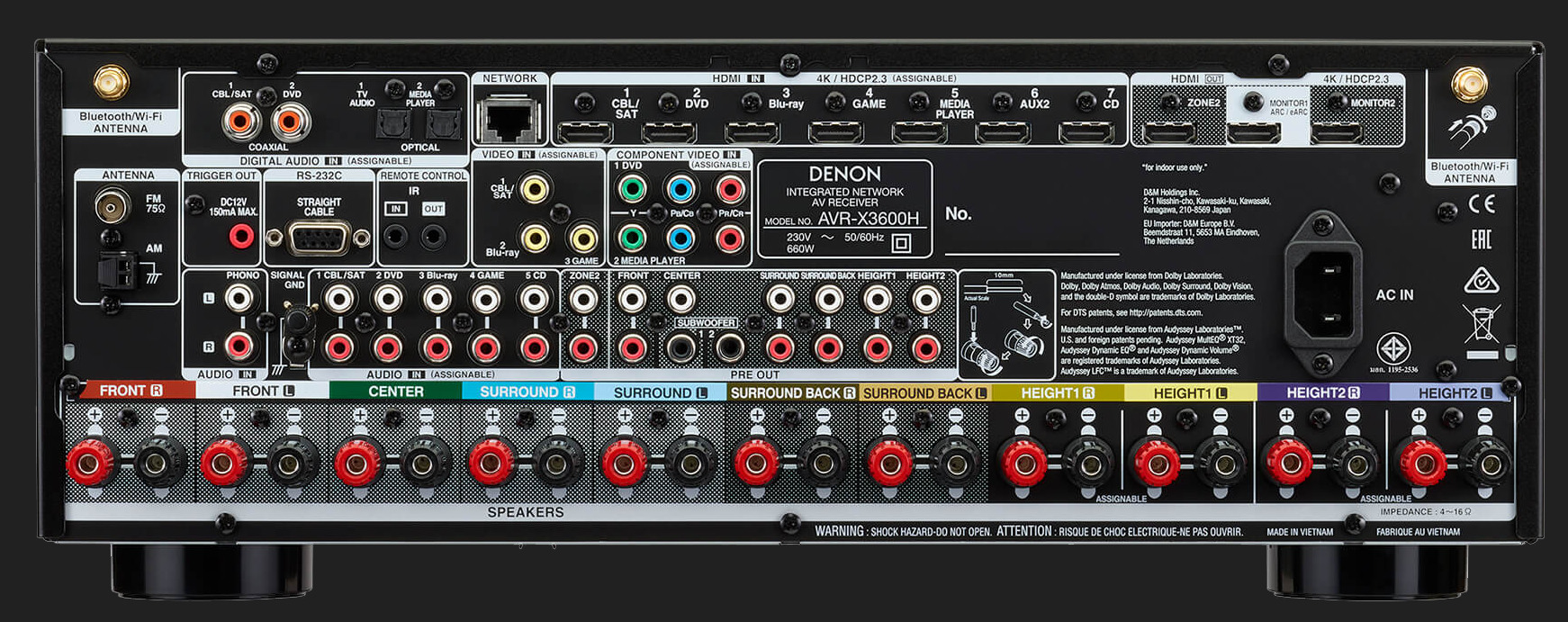 SECTIUNE HDMI AVANSATA CU EARCAVR-X3600H dispune de 8 intrari si 3 iesiri HDMI ce suporta 4K Ultra HD 60Hz video, 4:4:4 Pure Color sub sampling, Dolby Vision Compatible, High Dynamic Range (HDR10), Hybrid Log-Gamma (HLG), eARC, 3D si BT.2020 pass through pentru culori exceptionale, claritate si contrast. | |