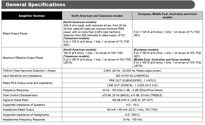 Specificatii tehnice pentru Receiver Pioneer VSX-535 DAB