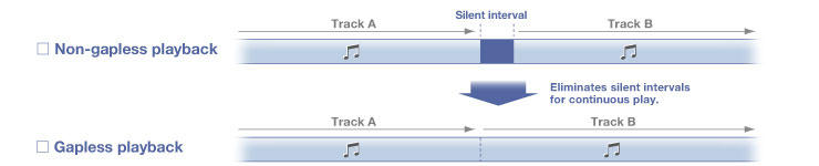 Gapless Playback este o functie aparent minora, dar foarte importanta. Multe playere muzicale introduc scurte pauze intre fisierele redate. Aparent, aceste pauze sunt nesemnificative, dar, in cazul in care ascultati albume live sau concerte clasice, efectul este foarte deranjant. Aceste inregistrari nu au pauze de tacere intre piese ci contin aplauze sau ambianta sonora din sala de concert. Pauzele induse de playerul audio vor suna artificial si vor denatura auditia.