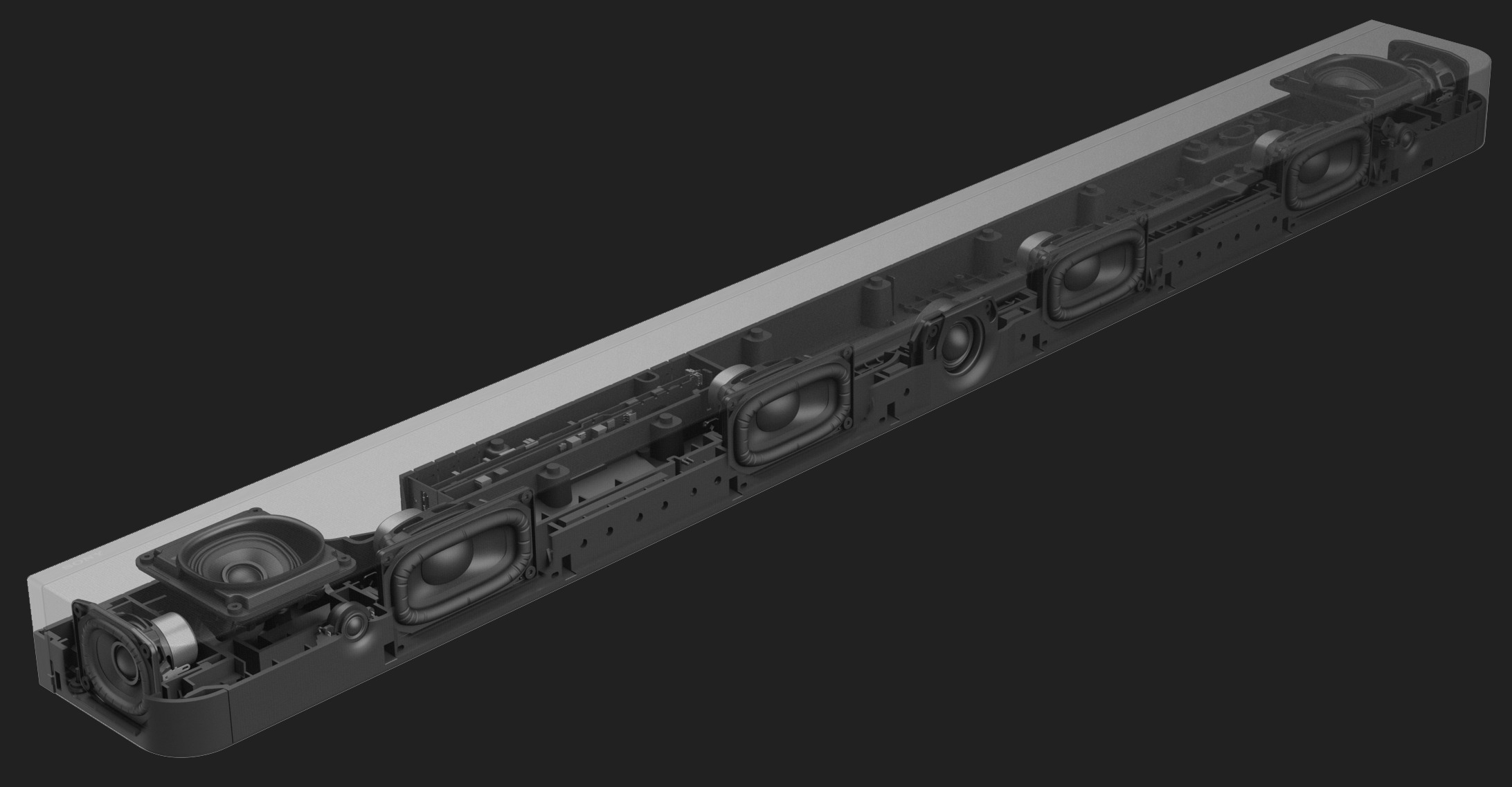 Procesarea semnalelor nu este suficientă pentru sunet surround extraordinar. Și difuzoarele fizice trebuie să asigure performanță acustică extraordinară, iar BRAVIA Theatre Bar 8 nu vă va dezamăgi.