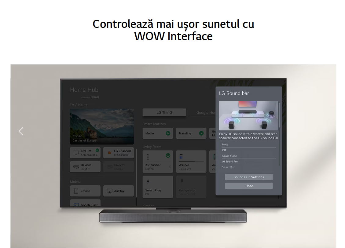 Completează experiența AI cu AI Magic Remote Controlează-ți mai ușor televozorul prin AI Magic Remote - nu este nevoie de alt dispozitiv! Un clic simplu, dar puternic, funcții de drag and drop care fac utilizarea webOS intuitivă și ușoară. |