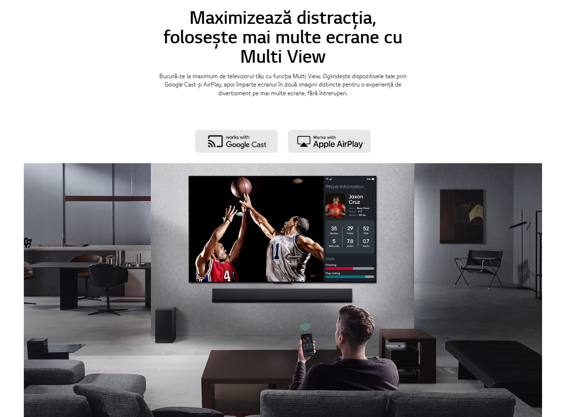 Actualizări noi timp de 5 ani, cu programul premiat webOS Re:New. Obține beneficiile celor mai noi funcţii şi software prin actualizări anuale. Premiat pentru securitate cibernetică de către CES, îți oferă siguranța că datele și confidențialitatea ta sunt protejate. |