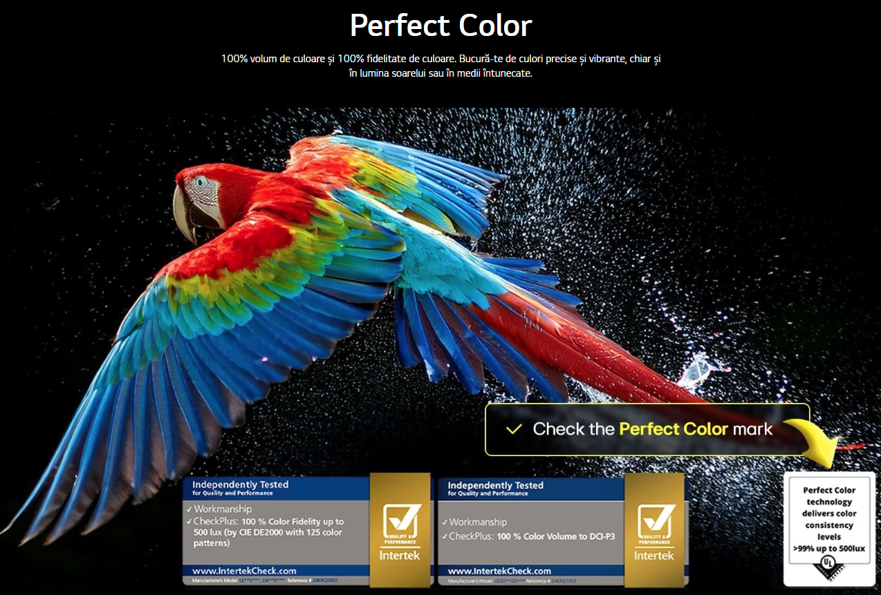* 100% fidelitate de culoare, pentru culori ca în realitate. 100% volum de culoare, pentru nuanțe mai bogate