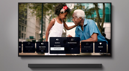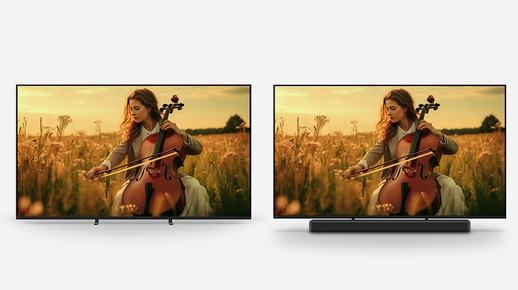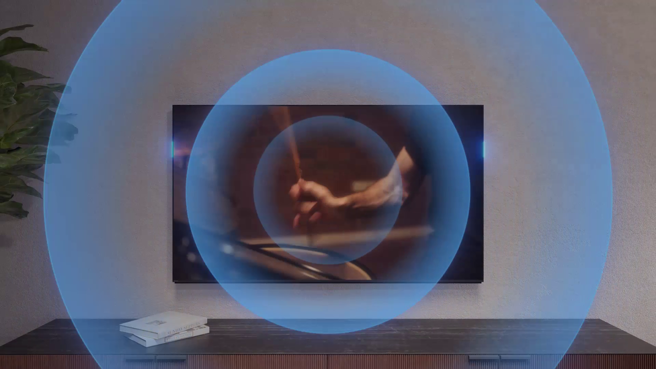 Sunet de cinema, sincronizat perfect cu imaginile Ascultați sunetul din locul potrivit. Sunetul nu va fi emis de sub ecran, ci chiar de ecran. Cu Acoustic Multi-Audio™, ceea ce vedeți și ceea ce auziți se sincronizează perfect. | |