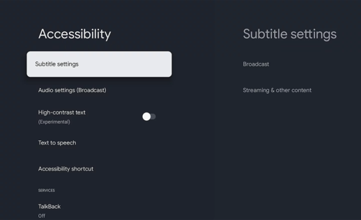 Subtitrare Subtitrările complexe oferă transcriere pe ecran a vocilor din coloana sonoră și a efectelor sonore din serialele și filmele preferate. Utilizați setările de subtitrări pentru a nu rata niciun detaliu și a vă bucura de conținut accesibil. |