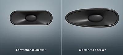 Formă unică pentru sunet mai clar și bas mai profund Claritatea este esențială. Spre deosebire de difuzoarele de televizor clasice, în cazul cărora undele de sunet se pot distorsiona, forma unică a diafragmei de pe X-Balanced Speaker™ reduce distorsiunea pentru rezoluție îmbunătățită a sunetului. | |