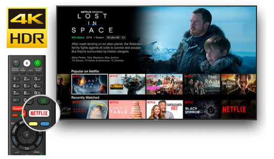 Intrati in actiune apasand un singur butonDeoarece televizoarele Sony au un buton Netflix dedicat, puteti incepe redarea in timp real cu o singura apasare de buton. | |