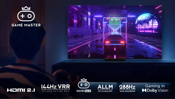 Game Master Pentru gameri, un televizor agil este la fel de important ca unul cu o imagine buna. Seria Q7C vine in special cu HDMI 2.1, ALLM, 144Hz VRR si 120Hz VRR acceptate, veti experimenta cea mai mica latenta si cele mai bune setari de imagine pentru jocuri, automat. In plus, vine cu VRR (Variable Refresh Rate), inclusiv certificarea FreeSync Premium Pro si Game Bar si 288Hz Game Accelerator. Accelerator de jocuri 288Hz: Cea mai recenta tehnologie DLG (Dual Line Gate) de la TCL aduce o rata de refresh mai mare si o latenta de joc imbunatatita pentru jocurile pe PC (Acceleratoare de joc de 288Hz in rezolutie FHD). | |