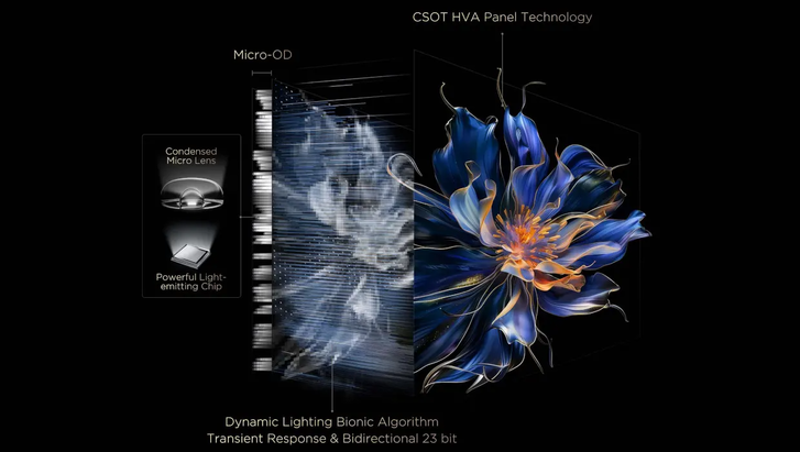 rystGlow WHVA panel Aproape fara margini, contrast mai mare, reflexie mai mica, vizualizare nelimitata. Panoul CrystGlow WHVA este o noua imbunatatire a tehnologiei HVA a CSOT. Acesta mentine un raport de contrast nativ ultra-inalt de pana la 7.000:1 si dispune de ZeroBorder pentru o experienta de vizionare nelimitata. In plus, este echipat cu un film cu reflexie redusa de 0,5% pentru a reduce eficient reflexia ecranului. In combinatie cu un unghi de vizualizare a culorilor ultra-wide imbunatatit cu 40% si caracteristici de economisire a energiei ridicate, detaliile de pe ecran sunt clare si clar vizibile. | |