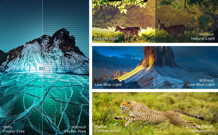 Perfectiune cromatica Utilizand tehnologia avansata Quantum Dot, aceasta dezvaluie peste 1.000.000.000 de nuante de culori vibrante si precise. Patrundeti intr-un caleidoscop de culori, unde fiecare nuanta prinde viata cu o stralucire si o profunzime de neegalat. | |