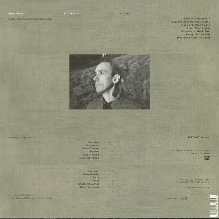 There is a distinguished tradition of solo bass albums on ECM, but Provenance is the first to be devoted to the electric bass guitar. Björn Meyer, Swedish-born and Swiss-based, has shaped a unique voice for his instrument inside the most diverse contexts, working alongside Persian harpist and singer Asita Hamidi, Swedish nyckelharpa player Johan Hedin, and Tunisian oud master Anouar Brahem.